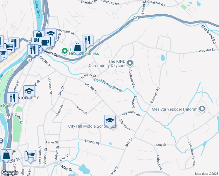 51 Brook Street is a 24 minute walk from the Waterbury at the Naugatuck stop.
