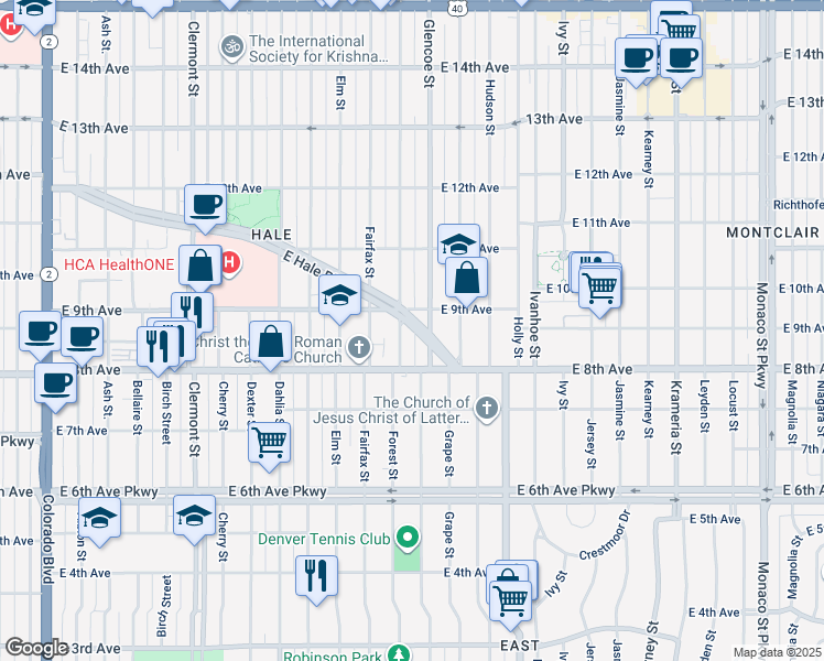 This location is in the Hale neighborhood in Denver. Nearby parks include Mayfair Park, Belleview Park and Henry S Lindsley Park.