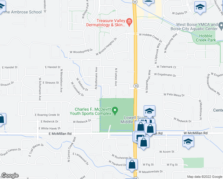 This location is in Boise. Nearby parks include C.F. McDevitt Youth Sports Complex, Hobble Creek Park and Champion Park.
