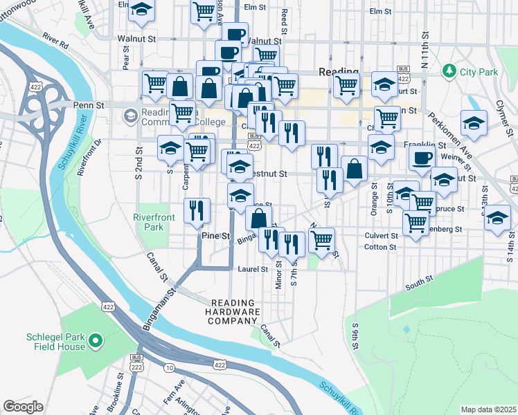 This location is in Reading. Nearby parks include Reading Iron Playground, Riverfront Park and Third and Spruce Recreation Area.