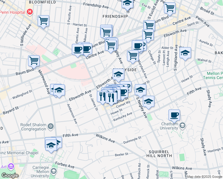 This location is in the Shadyside neighborhood in Pittsburgh. Nearby parks include Walnut Street Parklet, World War I Memorial and Morrow Park.