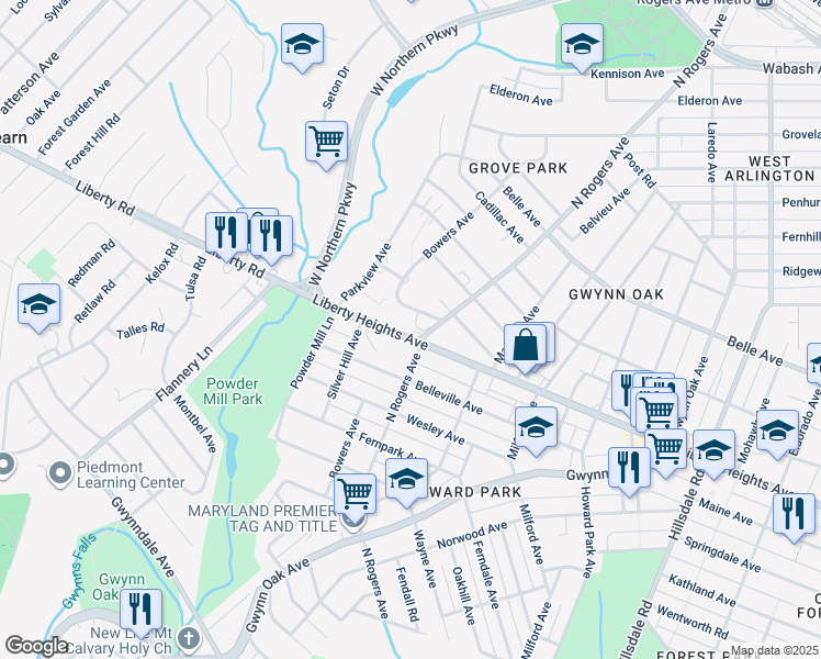 This location is in the Grove Park neighborhood in Baltimore. Nearby parks include Powder Mill Park, Playground at Gwynn Oak Park and Gwynn Oak Park.