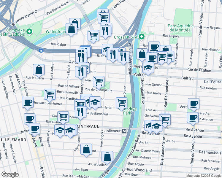This location is in the Sud-Ouest neighborhood in Montréal. Nearby parks include Saint Paul Park, parc Saint-Paul and parc de la Vérendrye.