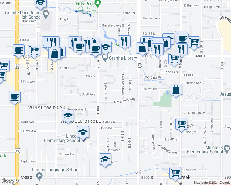 This location is in Millcreek. Nearby parks include Fitts Park, Harmony Park and Hillview Detention Basin Park.