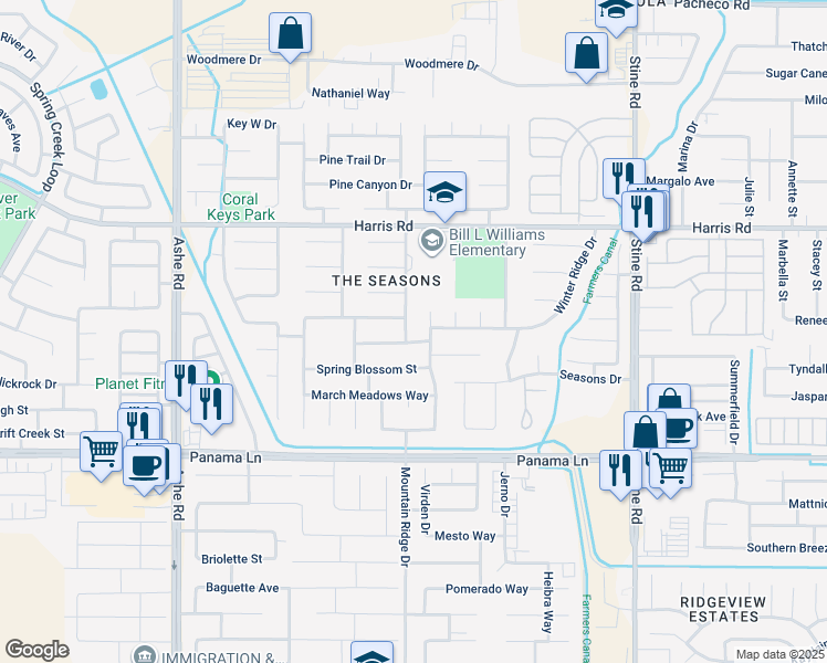 This location is in the The Seasons neighborhood in Bakersfield. Nearby parks include Seasons Park, Neighborhood Park and Coral Keys Park.