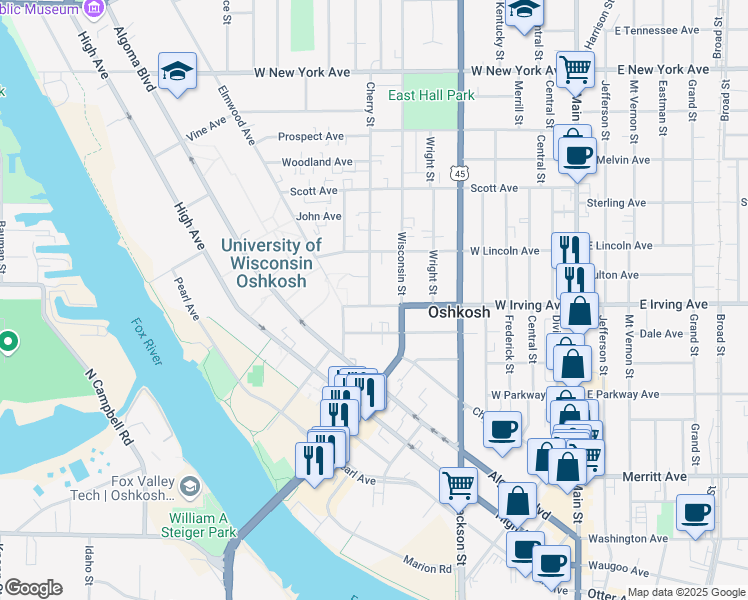 This location is in Oshkosh. Nearby parks include Oshkosh State Normal School Historic District, Shapiro Park and Carl E Steiger Park.