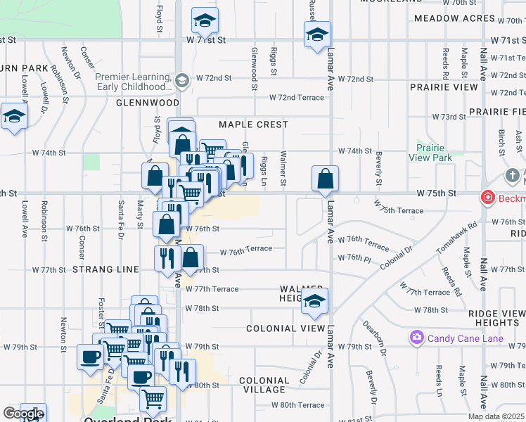 This location is in Prairie Village. Nearby parks include Marty Park, Clock Tower Plaza Park and Santa Fe Commons Park.