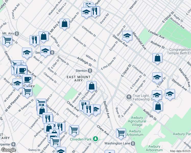 This location is in the East Mount Airy neighborhood in Philadelphia. Nearby parks include Pleasant Playground, Cliveden Park and Mount Airy Playground.