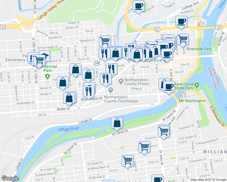 This location is in the city of Easton, PA. Easton has an average Walk Score of 67 and has 26,800 residents.