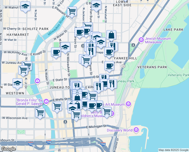 This location is in the Yankee Hill neighborhood in Milwaukee. Nearby parks include Cathedral Square Park, Norris Park Playground and Juneau Park.