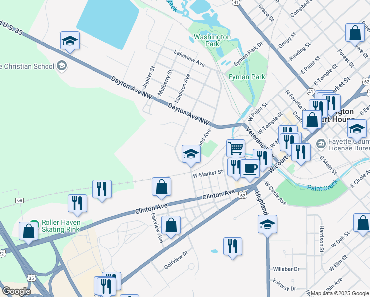 This location is in Washington Court House. Nearby parks include Roszmann Field, Eyman Park and Fayette County Fair Grounds.