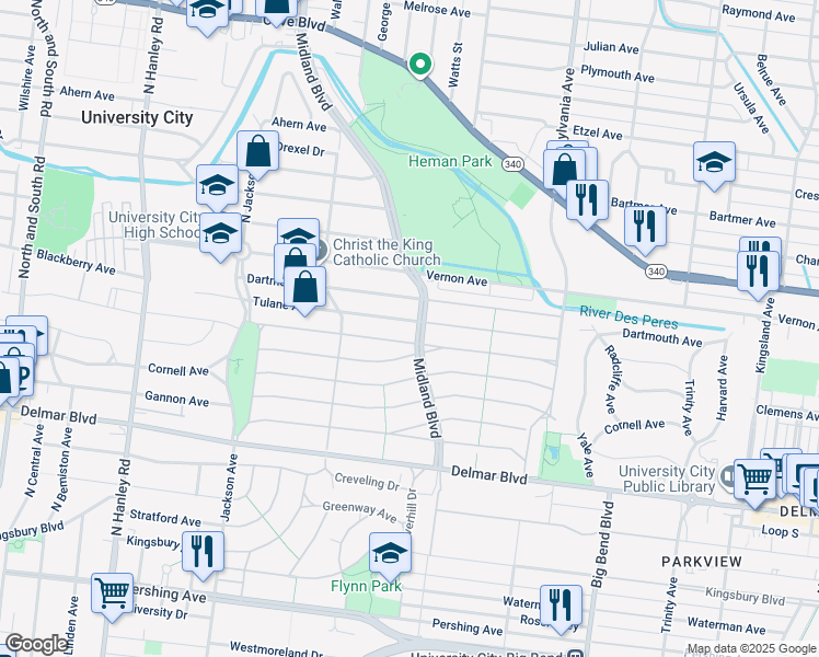This location is in University City. Nearby parks include Heman Park, Mooney Park and University City Dog Park.