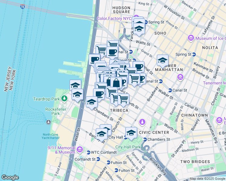 74 Hudson Street is in the Tribeca neighborhood. Tribeca is the 6th most walkable neighborhood in New York with a neighborhood Walk Score of 99.