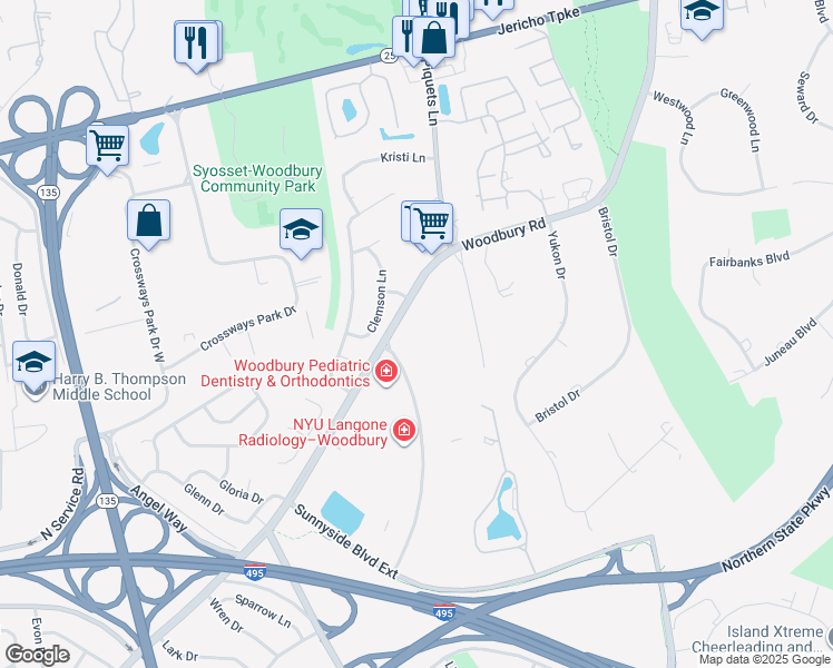 This location is in Hicksville. Nearby parks include Syosset Woodbury Park and Mannetto Hills Park.