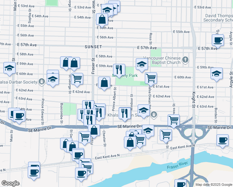 map of restaurants, bars, coffee shops, grocery stores, and more near 7798 Prince Albert Street in Vancouver