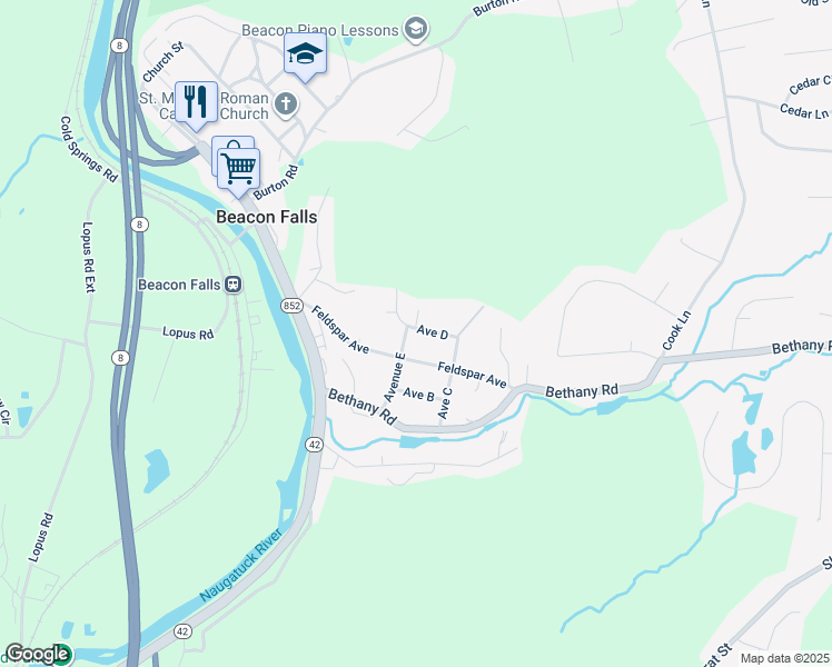 8 Avenue D is a 12 minute walk from the Waterbury at the Beacon Falls stop.