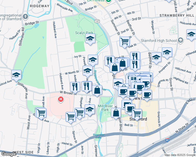 This location is in Stamford. Nearby parks include Mill River Park, Latham Park and 1983 Downtown Stamford Historic District.