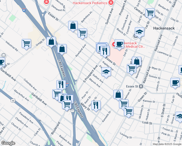 80 South Prospect Avenue is a 12 minute walk from the Pascack Valley Line at the ESSEX STREET stop.