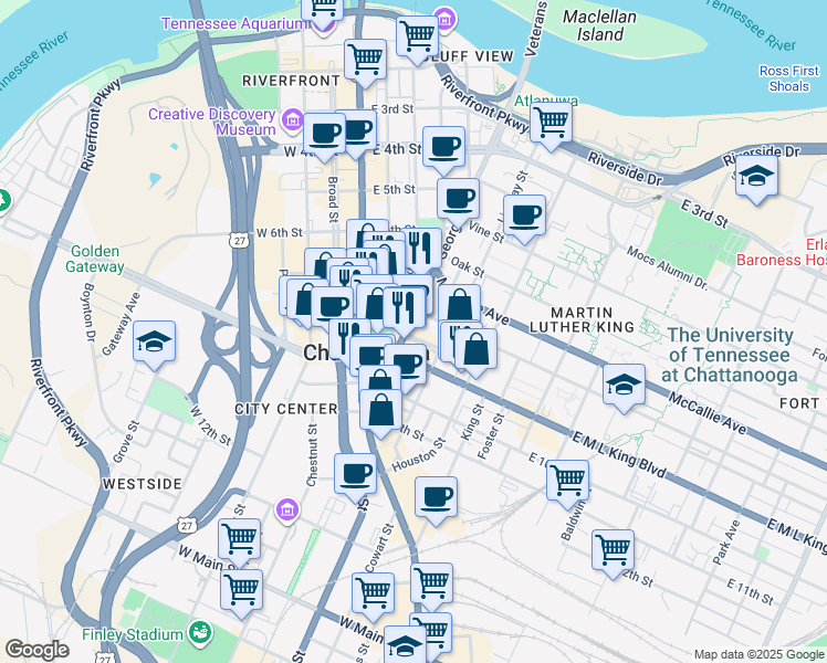 This location is in Chattanooga. Nearby parks include Miller Plaza, Fountain Square and South Stadium.