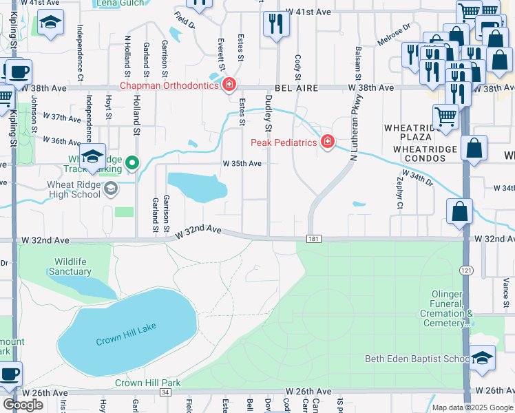 This location is in the Bel Aire neighborhood in Wheat Ridge. Nearby parks include Crown Hill Park, Crown Hill Park and Crown Hill Park.