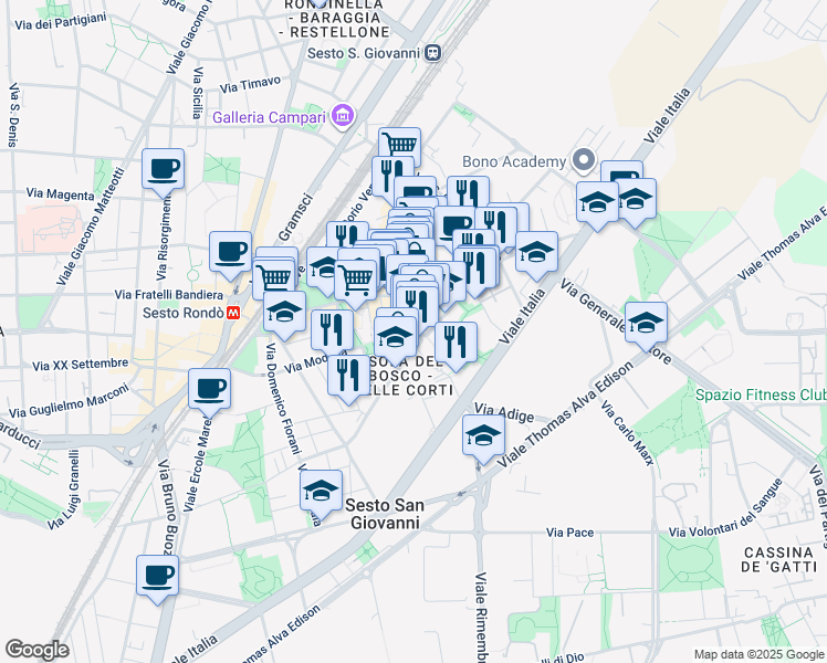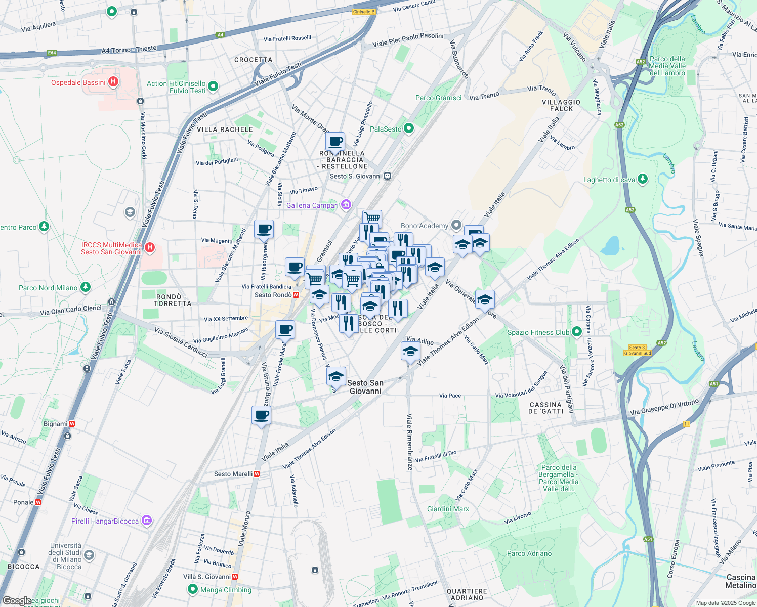 Nearby parks include Giardino A. Crisafulli, Giardino Italia-Guerra-Manzoni and Giardino Villa De Ponti.
