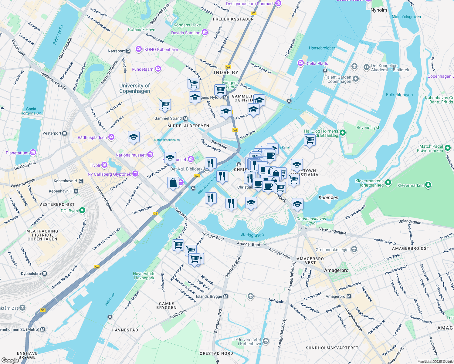 Nearby parks include Royal Library Garden, Laursen Vibeke and P Hus.