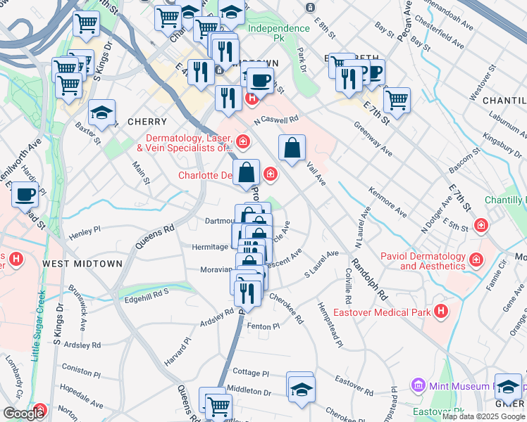 This location is in the Myers Park neighborhood in Charlotte. Nearby parks include Colonial Park, Independence Park, Charlotte,NC and Edgehill Park.