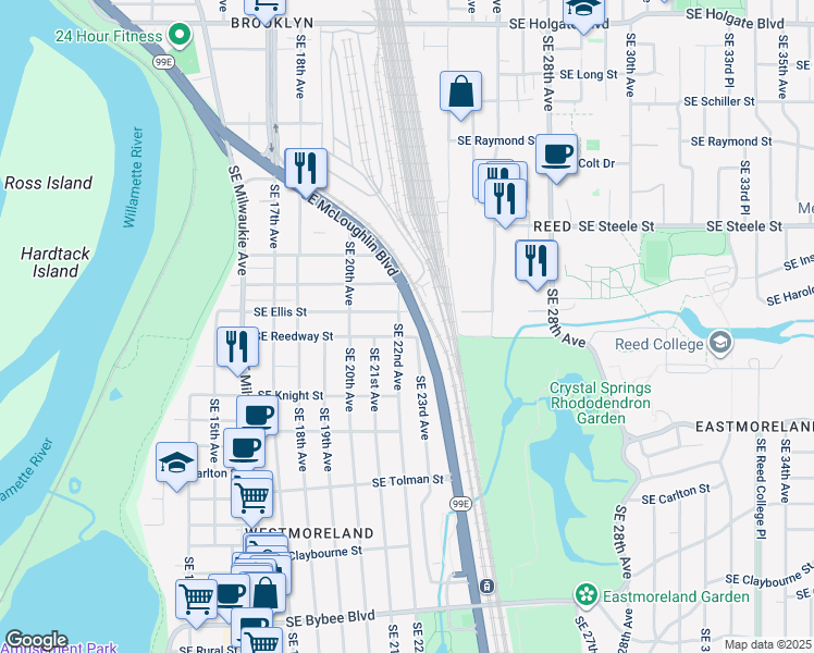 This location is in Portland. Nearby parks include Crystal Springs Rhododendron Garden, Crystal Springs Rhododendron Garden and Westmoreland Park.