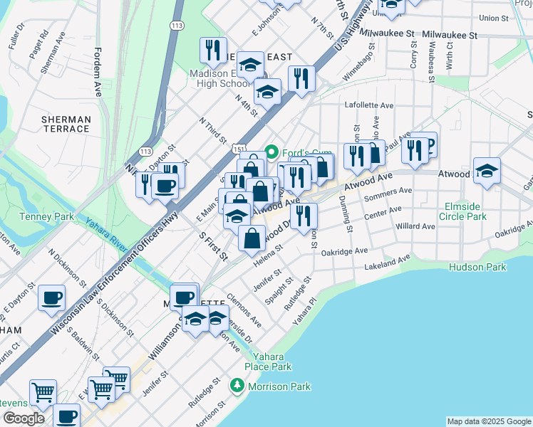 This location is in Madison. Nearby parks include Yahara Place Park, Yahara Place Park and Burr Jones Field.