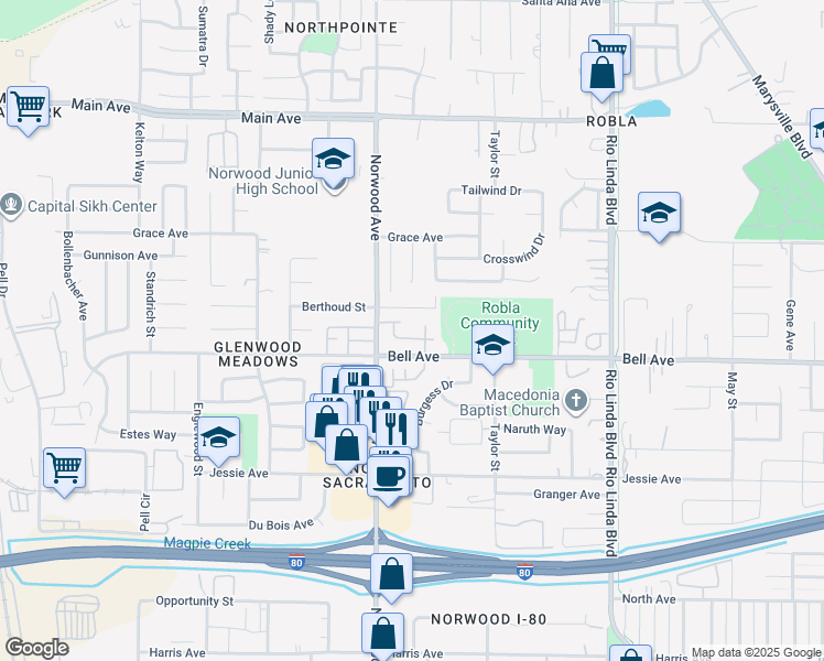 This location is in the Robla neighborhood in Sacramento. Nearby parks include Taylor Street Park, North Norwood Park and North Point Park.