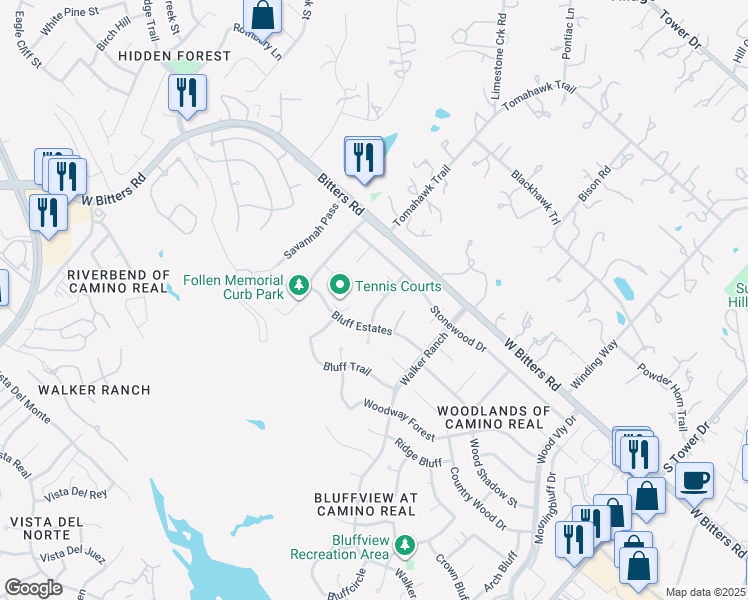 This location is in the Bluffview at Camino Real neighborhood in San Antonio. Nearby parks include Oak Hills Park, Walker Ranch Heritage Park and Sunset Hills Park.