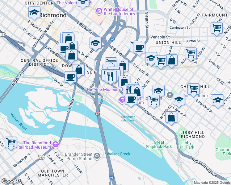 This location is in the Shockoe Bottom neighborhood in Richmond. Nearby parks include Poe Shrine, Taylors Hill Park and Shockoe Slip Historic District.