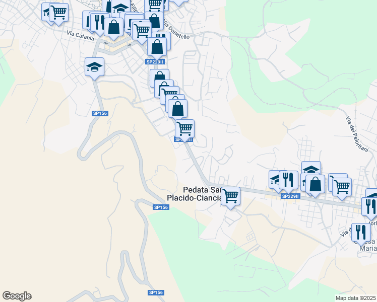 map of restaurants, bars, coffee shops, grocery stores, and more near Via Casale dei Greci in Adrano