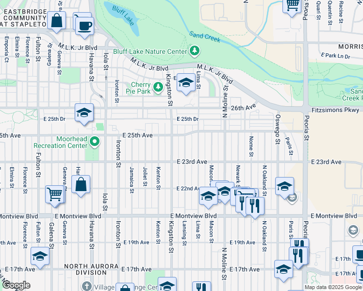 This location is in Aurora. Nearby parks include Moorhead Park, Spencer Garrett Park and Fitzsimons Golf Course.