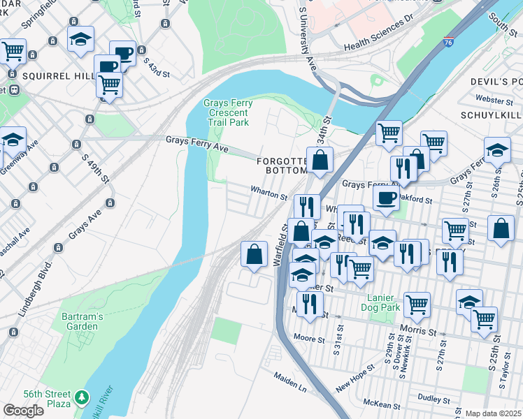 This location is in the Grays Ferry neighborhood in Philadelphia. Nearby parks include Grays Ferry Crescent Trail Park, Stinger Square Park and Bartram Gardens Park.