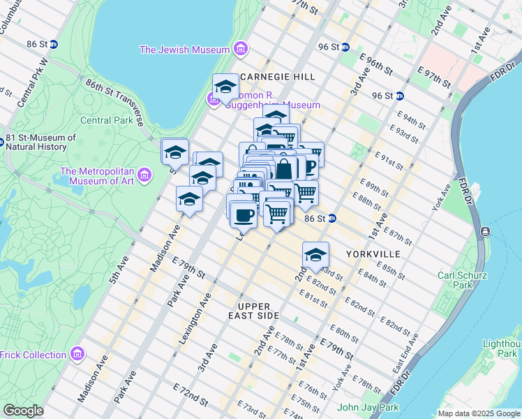 This location is in the Upper East Side neighborhood. Upper East Side is the 12th most walkable neighborhood in Manhattan with a neighborhood Walk Score of 99.