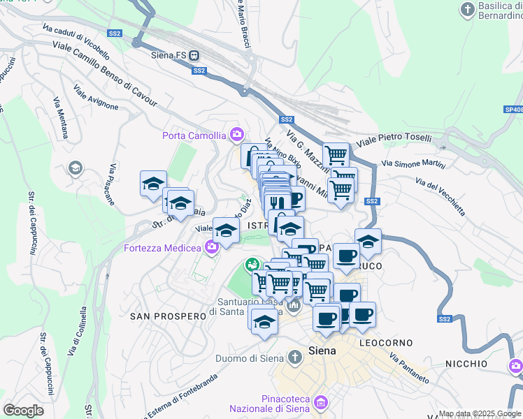 Nearby parks include Parking Siena, Giardini Pubblici and Sienne par.