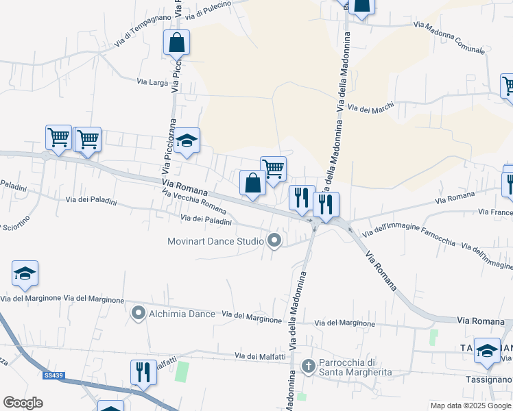 map of restaurants, bars, coffee shops, grocery stores, and more near 528 Via Fonda in Lucca