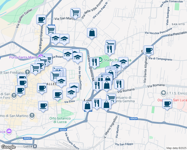 Nearby parks include Museo Orto Botanico, Macchina and Estacionamento.