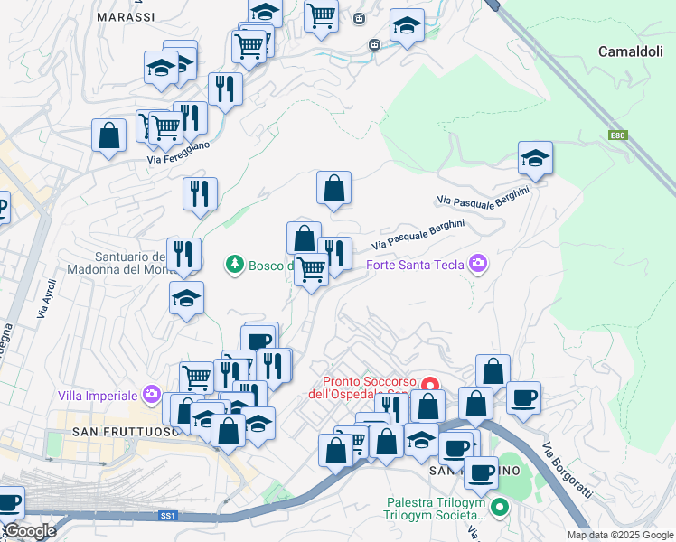 Nearby parks include Cimitero di Nostra Signora del Monte, Giardini Giovanni Saponara and Giardini Lamboglia G. "Nino".