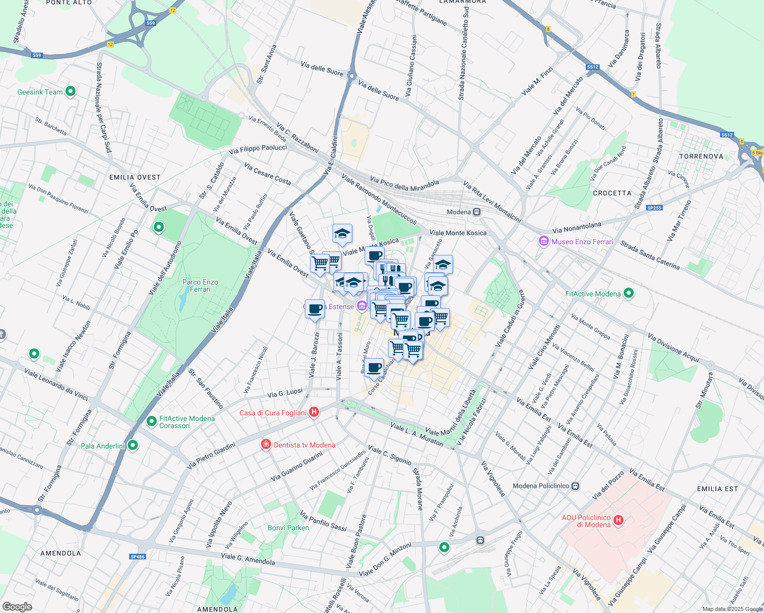 Nearby parks include Free Walking Tour Modena - Meeting point, Parco Novi Sad and Park House.