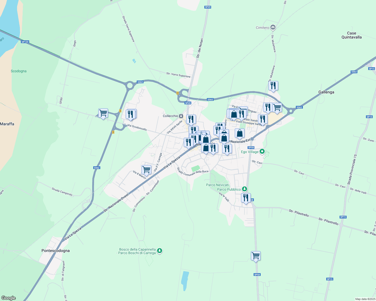 Nearby parks include Parco Nevicati, Parco pubblico and Parco Sara Molendi.