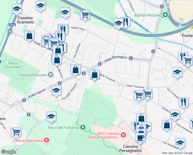 Nearby parks include Centro Addestramento Cinofilo, Parco Rozzano and Oasi Smeraldino.