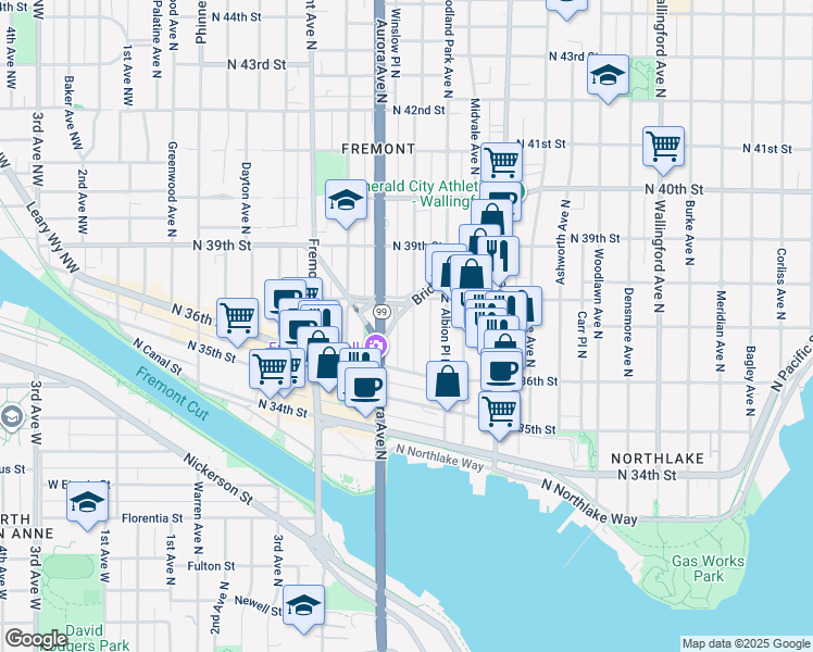 This location is in the Fremont neighborhood in Seattle. Nearby parks include A. B. Ernst Park, BF Day Playground and Fremont Canal Park.