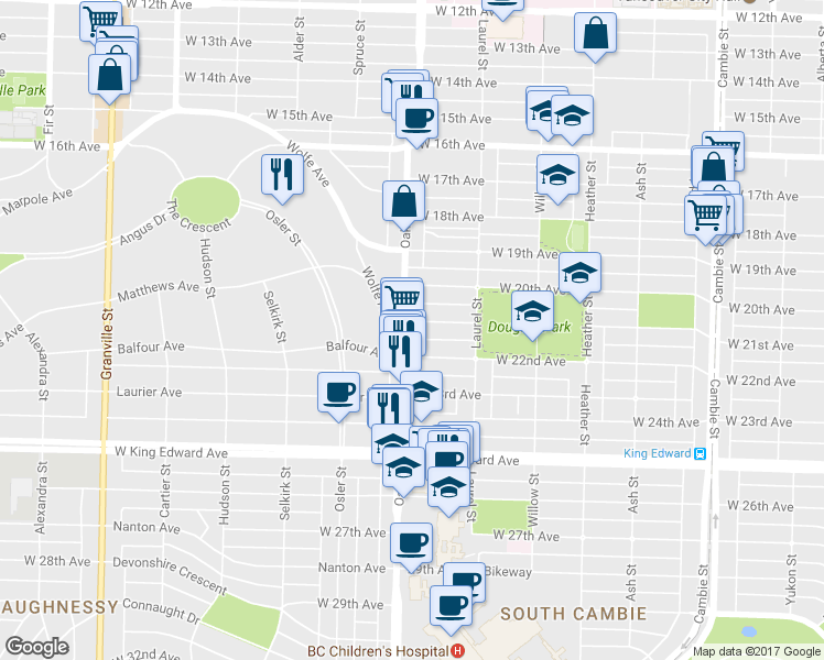 This location is in the Shaughnessy neighborhood. Shaughnessy is the 18th most walkable neighborhood in Vancouver with a neighborhood Walk Score of 62.