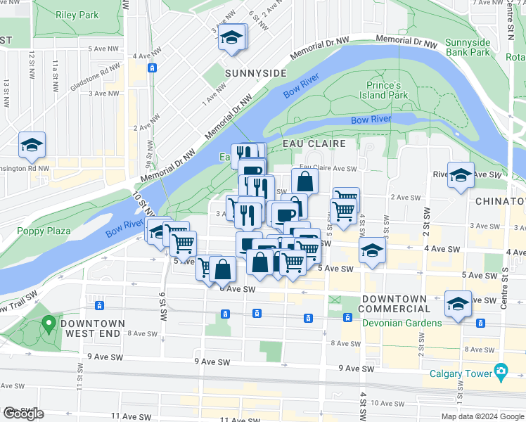 This location is in the Eau Claire neighborhood in Calgary. Nearby parks include McDougall Centre, Peace Park and View From Louise Bridge.
