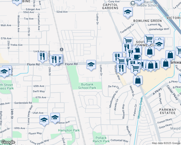This location is in the Parkway neighborhood in Sacramento. Nearby parks include Burbank School Park, Kemble School Park and Southgate Park.