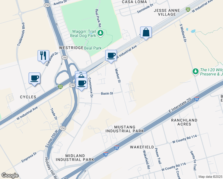 This location is in the city of Midland, TX. Midland has an average Walk Score of 42 and has 111,147 residents.