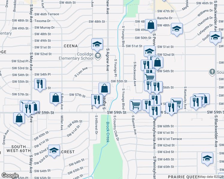 5700 South Agnew Avenue is in the Ceena neighborhood. Ceena is the 82nd most walkable neighborhood in Oklahoma City with a neighborhood Walk Score of 44.