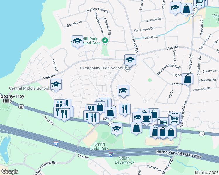 This location is in Parsippany. Nearby parks include Smith Fields Park and Volunteers Park.